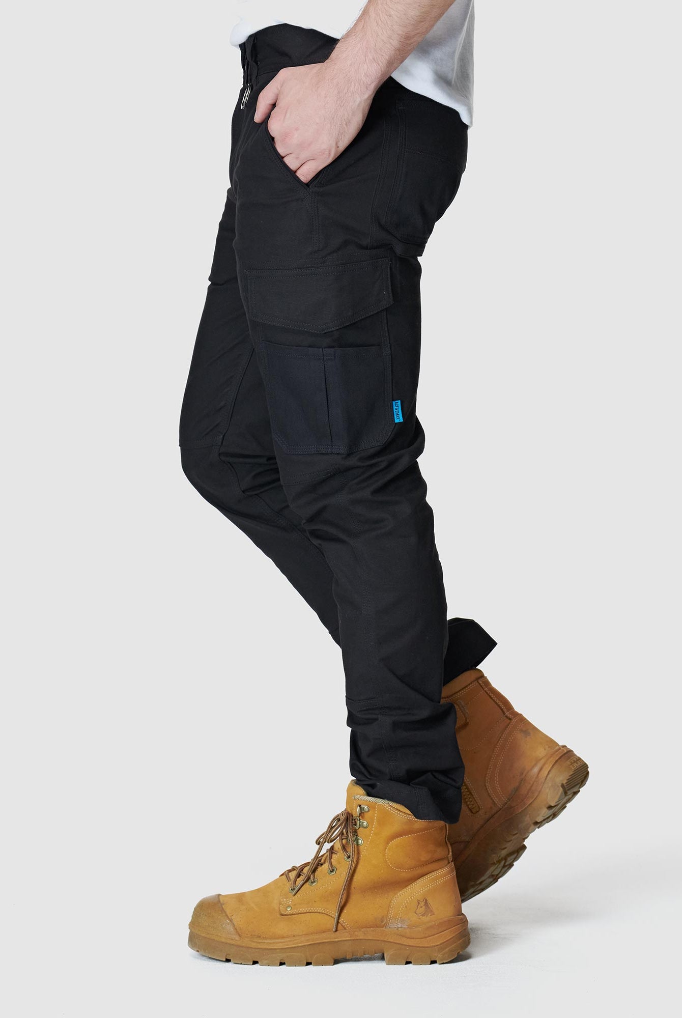fabric. The fabric is super strong but also super stretchy and made for the Australian tradie.