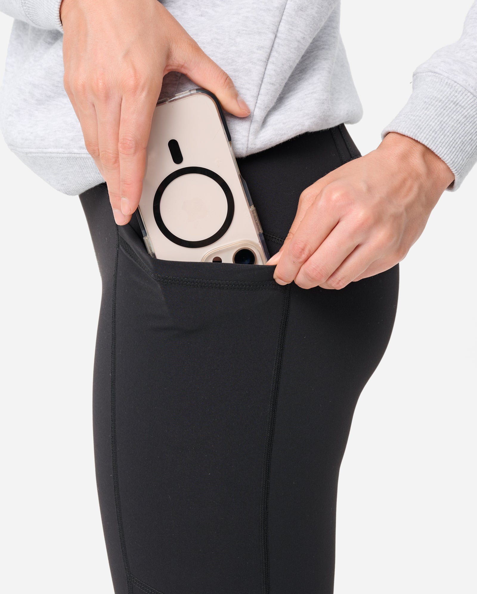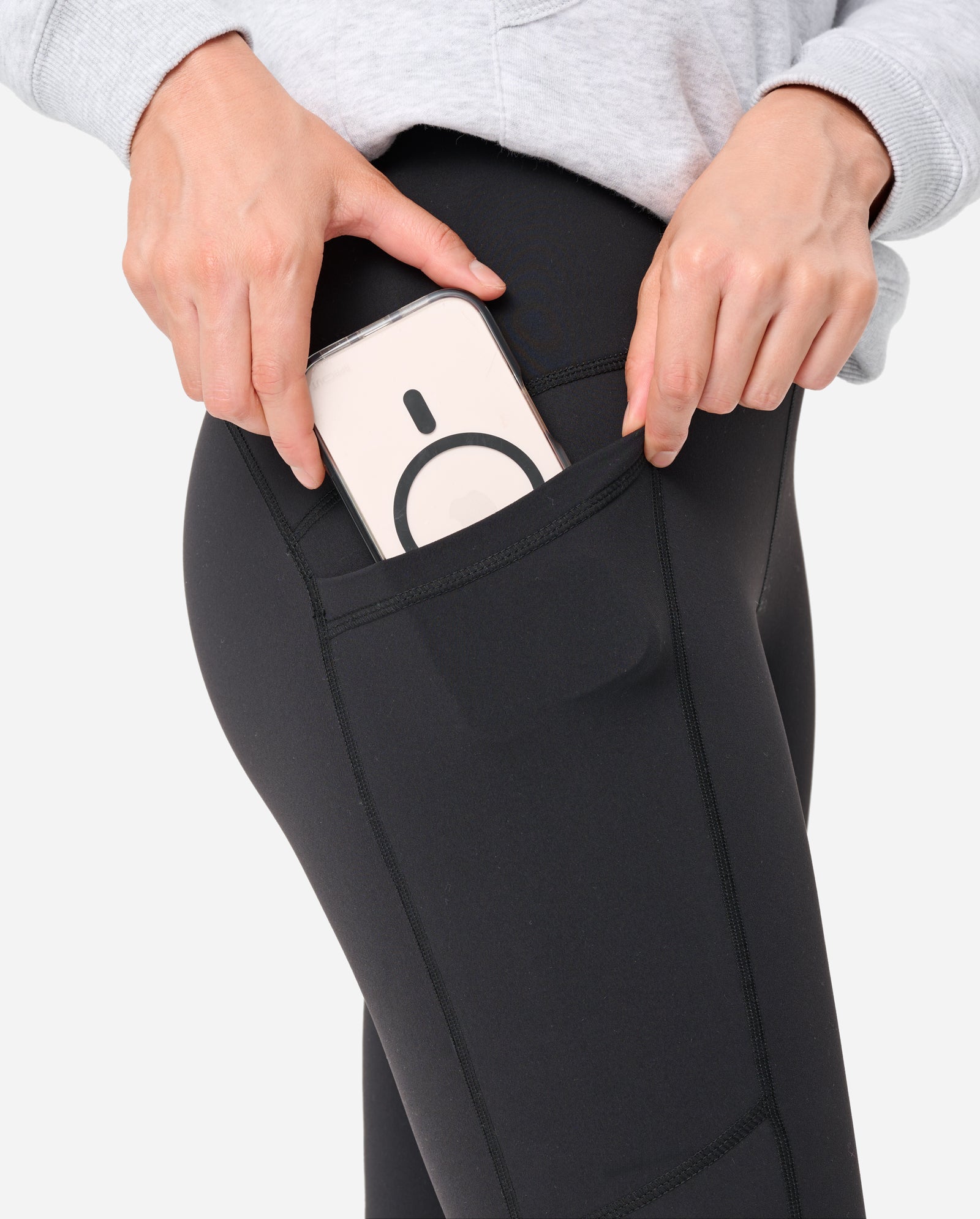 - Side pockets on both legs that fit all phones
